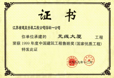 無線大廈(現(xiàn)名國通大廈)位于福田區(qū)新洲,建筑面積73069M2,高度201.5M,地下室2層,地上43層,是一座高智能化的電信寫字樓,結(jié)構(gòu)設(shè)計為鋼筋砼框架一筒體結(jié)構(gòu),8-32層為無粘結(jié)預(yù)應(yīng)力樓板砼,工程總造價6億元。工程于1995年6月開工,1997年12月竣工,施工中主要應(yīng)用了無粘結(jié)預(yù)應(yīng)力砼、高強泵送砼、粗直徑鋼筋連接、外墻干掛花崗巖等新技術(shù)。榮獲深圳市、廣東省、江蘇省的優(yōu)質(zhì)樣板工程,“江蘇省新技術(shù)應(yīng)用示范工程”、江蘇省“揚子杯”獎和99年度國家“魯班獎”。