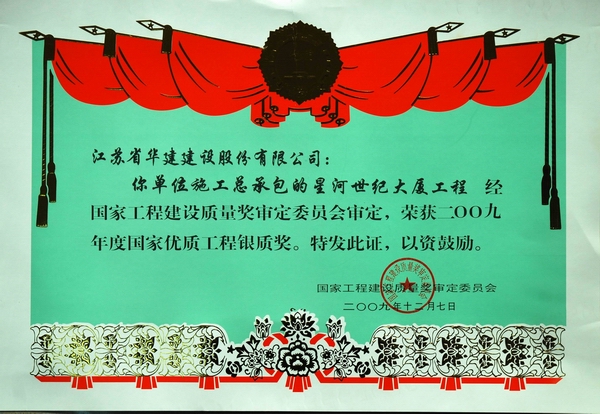 該工程先后榮獲2006年度“深圳市安全生產(chǎn)文明施工優(yōu)良工地”、2007年度深圳市優(yōu)質(zhì)工程“金牛獎(jiǎng)”第一名、2007年度廣東省優(yōu)良樣板工程獎(jiǎng)、2007年度江蘇省“揚(yáng)子杯”省外優(yōu)質(zhì)工程獎(jiǎng),2009年12月被評為2009年度國家優(yōu)質(zhì)工程銀質(zhì)獎(jiǎng)。
