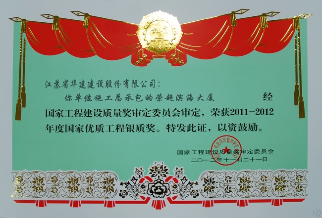該工程先后榮獲2007年度深圳市優(yōu)質(zhì)結(jié)構(gòu)工程獎、2010年度深圳市優(yōu)質(zhì)工程“金牛獎”、江蘇省“揚(yáng)子杯”優(yōu)質(zhì)工程獎,2012年項目QC管理小組榮獲“全國工程建設(shè)優(yōu)秀質(zhì)量管理小組”稱號,11月被評為2011-2012年度國家優(yōu)質(zhì)工程銀質(zhì)獎。